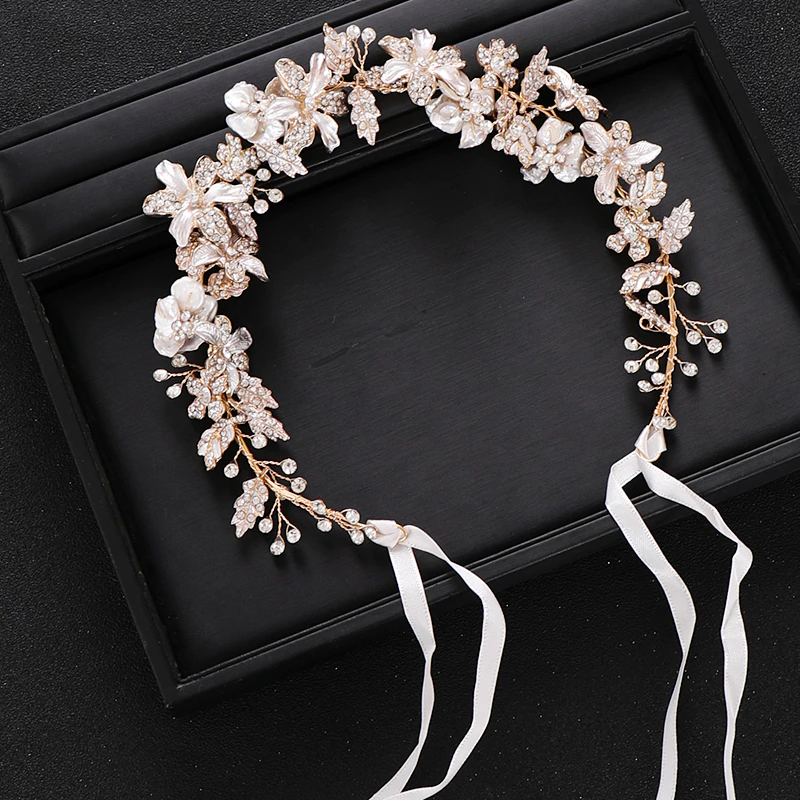 Hermosa tiara elaborada con perlas de imitación, diamantes de imitación y aleación de zinc